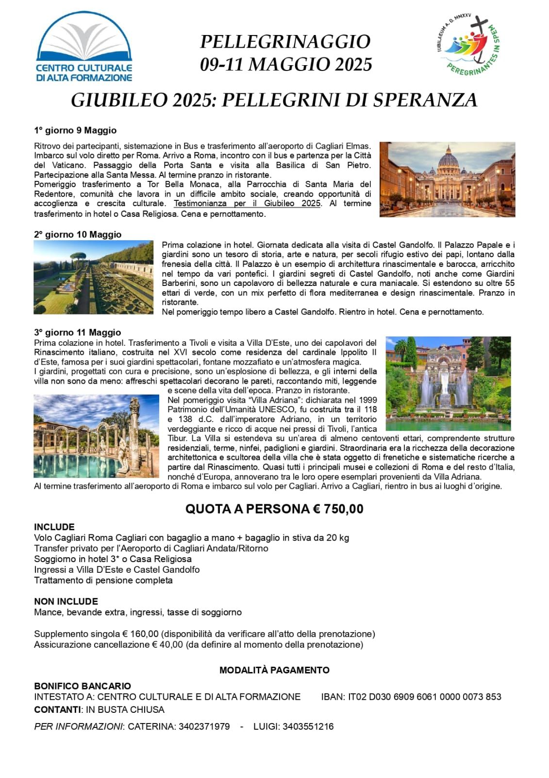 GIUBILEO 2025: PELLEGRINI DI SPERANZA Per informazioni e prenotazioni contattare